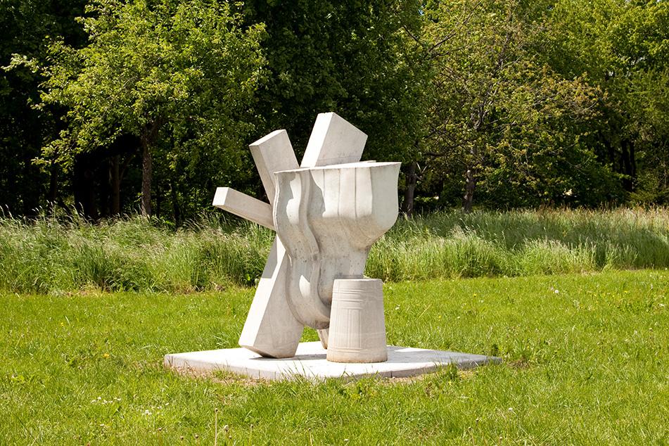 Die skulpturale Artikulation des Raumes steht im Zentrum des Schaffens von Ruud Kuijer, der u. a. an der Akademie der Künste in Berlin gelehrt hat. Er lotet die plastischen Qualitäten verschiedener Formelemente aus und experimentiert mit Gewicht und Statik, Gleichgewicht und Schwerkraft, Bewegung und Gegenbewegung. Dabei entwickelt er eine eigenständige skulpturale Formensprache und schließt durch seine Materialwahl zugleich an die Verwendung des Baustoffs Beton in der Architekturgeschichte seit den 1920er-Jahren an. Häufig wählt er auch ein architektonisches Element als Ausgangspunkt seiner Werke. Beispielhaft hierfür steht in Eschborn bei Blickachsen 12 seine „Vensterskulptuur V“. Entscheidend sind auch hier Bewegungsverschiebungen, Gewichtsverlagerungen und Durchblicke. Kuijer belässt all seine Werke materialsichtig, und betont so ihren abstrakten Charakter – selbst wenn er diesen durch augenzwinkernd eingearbeitete Objekte wieder aufbricht, wie in „Staffetta II“ und der in Eschborn ausgestellten Arbeit ohne Titel. An jedem der von Ruud Kuijer bespielten Standorte der Blickachsen 12 ist eine Gruppe seiner Arbeiten zu sehen, die unterschiedliche Ausprägungen seines Formenkanons vorstellt und Kontraste ebenso wie Gemeinsamkeiten aufzeigt.