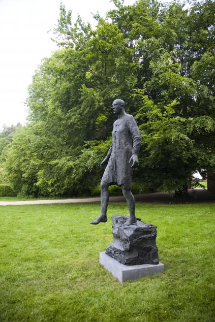 Seit dem Studium der Bildhauerei beschäftigt sich Hanneke Beaumont mit der menschlichen Figur. Die Monumentalskulptur „Stepping Forward“ vor dem Europagebäude in Brüssel hat die Kunstwelt in Europa, Asien und den USA auf ihre Arbeiten aufmerksam gemacht. Meist präsentiert Beaumont ihre überlebensgroßen Figuren aus Terrakotta, Eisen oder Bronze in unangestrengten und nicht-klassischen Posen auf rechtwinkligen Sockeln und Podesten. So auch ihre dauerhaft in Bad Homburg installierte Gruppe „Melancholia I“. Bei Blickachsen 12 bietet der konzentrierte, ruhige Rahmen des Klosters Eberbach der fokussierten Stimmung der neun ausgestellten Bronzeskulpturen einen idealen Rahmen. Balancierend, sitzend oder kniend scheinen die Figuren in ihrer Bewegung innezuhalten. Sind die Körper auch klar definiert, bleiben die Oberflächen schrundig und vage. Sie sind von einfachen Gewändern bedeckt, ohne dass man die Kleidung benennen könnte. Genauso unbestimmt wirken die deutlich modellierten Gesichter, die keine Individualität und keinen Ausdruck zeigen. Beaumont schafft es, durch universale Körperhaltungen individuelle Stimmungen auszudrücken. Dabei thematisiert sie nicht nur das Mensch-Sein. Weil sie die menschlichen Figuren auf Sockeln platziert, interpretiert sie auch die klassische Idee von Skulptur neu.