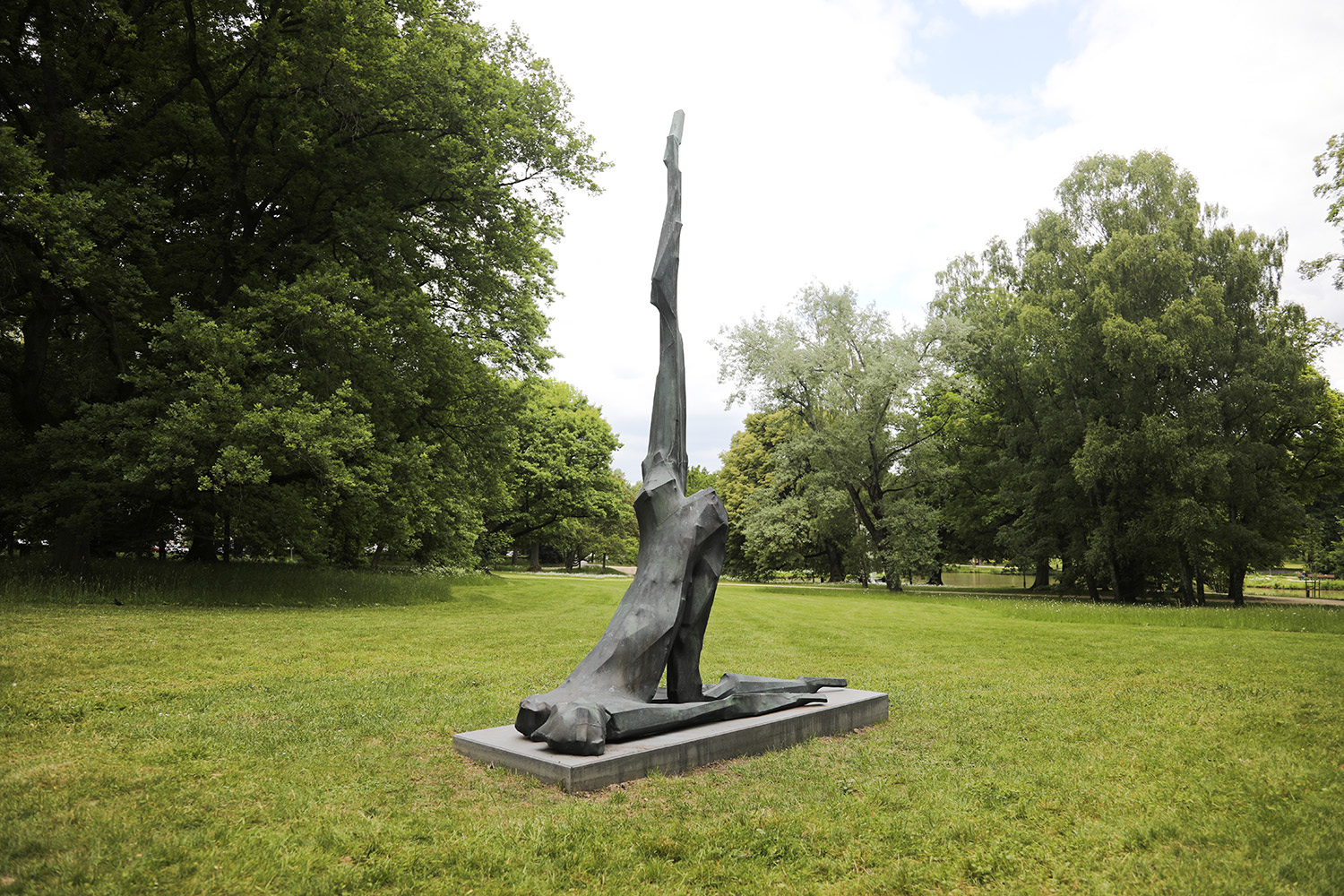 Georg Herold ist bekannt für seine Werke, die auf humorvolle und oft konfrontative Weise sowohl das alltägliche Leben als auch die hohe Kunst kommentieren. Bereits seit den 1970er-Jahren verwendet er für seine Skulpturen häufig Dachlatten, an denen er schätzt, dass sie „rational, emotional, psychisch und physisch erlebbar” seien. Für die Werkgruppe, zu der auch „beef early“ und „Mont Parnass“ gehören, baut Herold daraus Figuren, die er mit Stoff bespannt und lackiert. Für die in Bad Homburg ausgestellten Versionen wurden diese fragilen Konstruktionen in Bronze und Aluminium abgegossen; das Aluminium ist leuchtend rot lackiert, während die Bronze materialsichtig bleibt. In „beef early“ erinnert die sich räkelnde Pose der Figur an die Tradition des liegenden Aktes von Tizian bis Manet, könnte aber ebenso aus einem Fitnessstudio stammen. Der Titel von „Mont Parnass“ spielt auf den mythischen Sitz der Musen an, die Figur zeigt allerdings weniger kreatives Aufstreben als sportlichen Ehrgeiz, indem sie ein Bein wie bei einer Yogaübung hoch in die Luft reckt.
