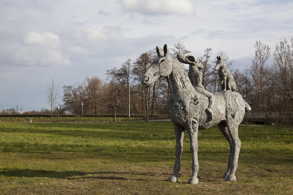 Sophie Ryder beschäftigt sich seit jeher mit der Darstellung von tiermenschlichen Mischwesen als Sinnbilder menschlicher Eigenschaften, Emotionen und Wünsche. Schon früh entwickelt sie „Lady Hare“ (Hasendame), eine Figur mit einem menschlichen Frauenkörper und einem Hasenkopf, als eigenes Motiv zur zentralen Gestalt ihrer künstlerischen Arbeit. In der Kunstgeschichte hat die Darstellung von Hasen eine lange Tradition als Symbol für Fruchtbarkeit und Sinneslust, für Wiedergeburt, Kraft oder Weisheit. Diese Bedeutungen des Tieres schreibt Ryder ihren Frauenfiguren ein, die sie häufig gemeinsam mit dem mythischen Minotaurus als männlichem Ausdruckträger oder aber mit Hunden als vertrautem Gegenüber des Menschen abbildet. Sophie Ryder stellt im Rahmen der Ausstellung „Blickachsen 10“ neun ihrer charakteristischen Werke im Kloster Eberbach aus und präsentiert im Eschborner Skulpturenpark Niederhöchstadt ihre monumentale Plastik mit dem Titel „Conversation“. Aufmerksam einander zugewandt, sitzen sich hier eine „Lady Hare“ und ein Hund auf dem Rücken eines Pferdes gegenüber. So überformt die Künstlerin und leidenschaftliche Hundezüchterin Sophie Ryder in „Conversation“ das Miteinander der beiden Wesen zur Metapher von Freundschaft und Achtsamkeit.