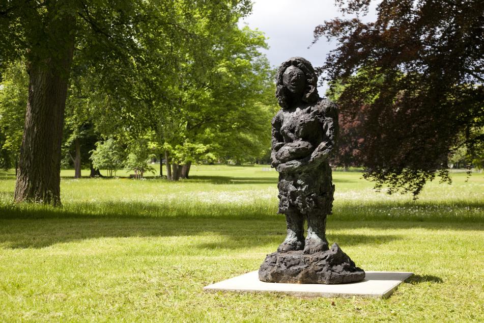 Der Maler und Bildhauer Jean Y. Klein hat für „Blickachsen 11“ in Bad Homburg seine Figur „Hirtin“ als lebensgroße Bronze angefertigt und stellt auch im Freilichtmuseum Hessenpark aus. Die „Hirtin“ kann als charakteristisch für das plastische Schaffen des Kanadiers gelten, der sich in seinem Werk vorrangig weiblichen Figuren der griechischen Mythologie widmet. Die Figur der „Hirtin“ steht in Zusammenhang mit dem Mythos von Arkadien als einem idyllischen Ort, in dem ein Hirtenvolk im Einklang mit der Natur und ohne schwere körperliche Arbeit glücklich und unbeschwert lebt. Kleins „Hirtin“ trägt beschützend ein Lamm auf ihren Armen und unterstreicht damit die innere Verbundenheit von Mensch und Tier. Die bukolische Vorstellung von Hirten als Grenzfiguren, die unabhängig von der bäuerlichen Ordnung in Freiheit leben, ist auch formal in Kleins Darstellung seiner „Hirtin“ eingeflossen: Sie folgt nicht den strengen Gesetzen menschlicher Anatomie, vielmehr zeugt ihre freie und gestische Oberflächengestaltung von einem undogmatischen Umgang mit den Schönheitsidealen und Herstellungsverfahren der antiken griechischen Tradition. So bilden Kleins Figuren keine reinen Abbilder bekannter Gestalten, sondern sollen als Projektionsflächen die Fantasie des Betrachters ansprechen.