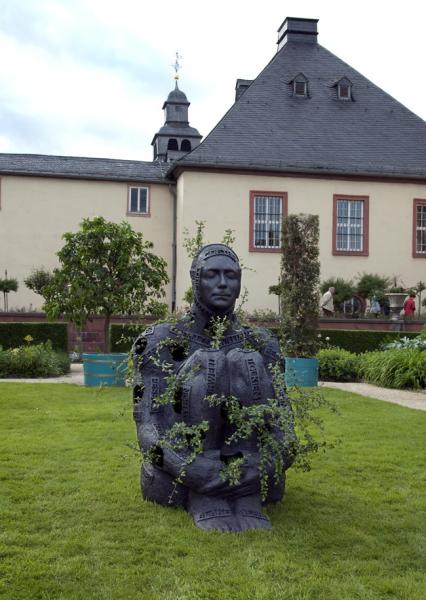 Der international renommierte spanische Künstler Jaume Plensa hat im Rahmen der "Blickachsen" bereits mehrfach ausgestellt. Leitmotiv für seine Arbeit ist ein Satz von William Blake: "Ein einziger Gedanke füllt die Unendlichkeit." Das schriftliche Wort ist als Material ein wichtiges Element in Plensas Werken, die nachhaltig die Imagination des Betrachters ansprechen. Sein Ziel ist die poetische Verdichtung und gedankliche Durchdringung des Raums. In "Blickachsen 7" ist Plensa mit drei Arbeiten vertreten. Die fünf Meter hohe, aus filigranen Lettern zusammengesetzte Stahlfigur "Nosotros" (wir) sitzt gewissermaßen als Volk der Welt zwischen den historischen Denkmälern des Kaisers und der Kaiserin auf dem Schmuckplatz. Nachts scheint die beleuchtete Skulptur von Innen heraus zu strahlen. Die mit den Namen bekannter Musiker beschriftete Aluminiumfigur "Serguei Prokofiev" ist eine der Arbeiten, die Plensa als "Gefäße für die Seele" beschreibt. Ebenso die im Orangeriegarten des Schlosses aufgestellte Bronze "Alchemy": Aus dem Inneren der mit Schriftstellernamen versehenen Figur wächst eine Pflanze als Verstofflichung von Ideen und Erkenntnissen heraus.