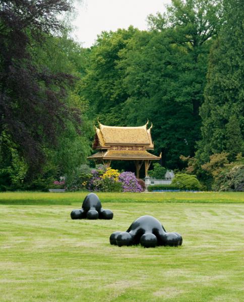 Die Werke des japanischen Künstlers Masayuki Koorida bestechen und verwundern durch ihre schlichte und zugleich ungewöhnliche Formgebung. Sie erinnern an Moleküle oder Amöben – an kleinste Teilchen oder Lebewesen, unendlich vergrößert. Aus schwarzem Granit gemeißelt und anschließend auf Hochglanz poliert, erwecken die verstreut auf einer weitläufigen Kurparkwiese liegenden Gebilde mit ihren vollendeten Rundungen den Eindruck, als könnten sie bei Berührung zerfließen oder zerplatzen – auch wenn ihre Titel sie eindeutig als „Flowers“ (Blumen) und „Seed“ (Samen) benennen. Sie wirken fragil und doch stabil in sich ruhend, artifiziell und doch belebt. Koorida beschreibt den bildhauerischen Schaffensprozess als Vorgang, in dessen Verlauf sich Gedanken und Eingebungen auf der Suche nach einer allgemeingültigen Sprache zu einer Vorstellung, einem konkreten Bild formen. Dieser „originäre Inhalt einer Skulptur“ erhalte in seinen Plastiken durch die reduzierte gestalterische Umsetzung ein vielschichtiges Erscheinungsbild, das wiederum die Fantasie des Betrachters anrege.