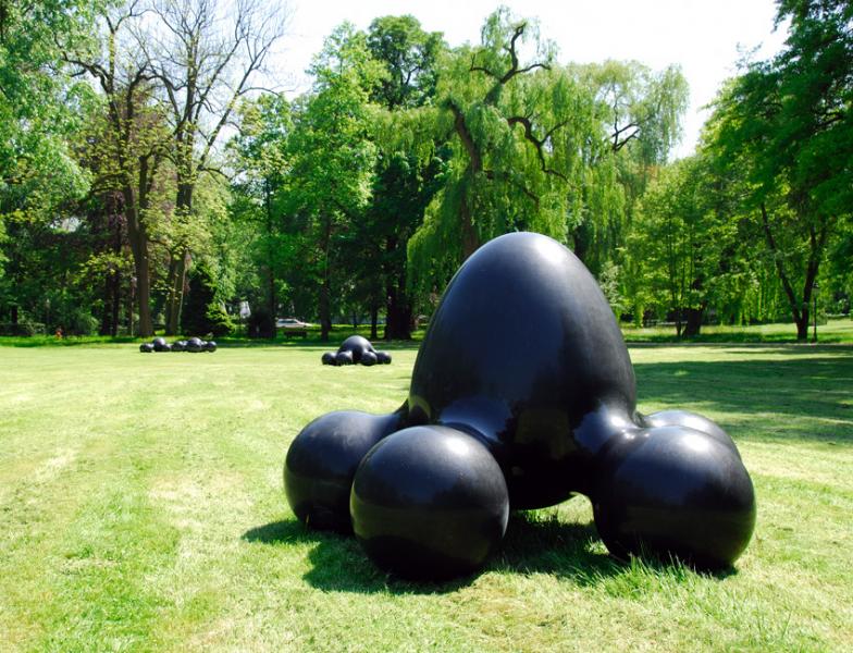 Die Werke des japanischen Künstlers Masayuki Koorida bestechen und verwundern durch ihre schlichte und zugleich ungewöhnliche Formgebung. Sie erinnern an Moleküle oder Amöben – an kleinste Teilchen oder Lebewesen, unendlich vergrößert. Aus schwarzem Granit gemeißelt und anschließend auf Hochglanz poliert, erwecken die verstreut auf einer weitläufigen Kurparkwiese liegenden Gebilde mit ihren vollendeten Rundungen den Eindruck, als könnten sie bei Berührung zerfließen oder zerplatzen – auch wenn ihre Titel sie eindeutig als „Flowers“ (Blumen) und „Seed“ (Samen) benennen. Sie wirken fragil und doch stabil in sich ruhend, artifiziell und doch belebt. Koorida beschreibt den bildhauerischen Schaffensprozess als Vorgang, in dessen Verlauf sich Gedanken und Eingebungen auf der Suche nach einer allgemeingültigen Sprache zu einer Vorstellung, einem konkreten Bild formen. Dieser „originäre Inhalt einer Skulptur“ erhalte in seinen Plastiken durch die reduzierte gestalterische Umsetzung ein vielschichtiges Erscheinungsbild, das wiederum die Fantasie des Betrachters anrege.