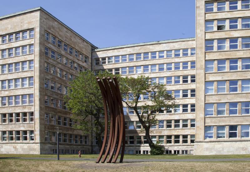 Der vielseitige Künstler Bernar Venet ist durch seine unverwechselbaren Stahlskulpturen im öffentlichen Raum weltweit bekannt. Seine in Deutschland wohl prominenteste Arbeit ist der vor der Berliner Urania installierte „Arc de 124,5°“. Im Rahmen der „Blickachsen“ hat Venet bereits mehrfach ausgestellt. Die Skulptur „Indeterminate Line“ ist dauerhaft im Bad Homburger Kurpark zu sehen. Die Linie bestimmt als Thema das künstlerische Werk Bernar Venets seit den 1980er Jahren. Über die Linie als grafische Wiedergabe einer mathematischen Gleichung und die Darstellung einfacher mathematischer Informationen wie Winkel, Bögen oder diagonale Linien gelangte er zur Beschäftigung mit unberechenbaren Linien. Neben den streng geometrischen Geraden oder Bögen aus Vierkantstahl entstehen nun auch unregelmäßige Spiralformen und stählerne Linienknäuel, die für Venet die „Energie atomischer Masse“ verkörpern. Drei dieser „Indeterminate Lines“ sind nun in Frankfurt ausgestellt – zusammen mit sechs weiteren Werken Venets. Die Verbindung von Geometrie und künstlerischer Individualität untersucht Venet in seinen Gruppen gegeneinander versetzter „Bögen“. Auch hiefür sind auf dem Campus Westend vor dem IG-Farben-Haus mehrere Beispiele zu sehen. Sie bestehen aus mehreren Bündeln von Bögen, die wiederum versetzt zueinander positioniert sind und den Betrachter in ihr Kraftfeld ziehen, Energie entwickeln, indem sie die Leere nutzen.