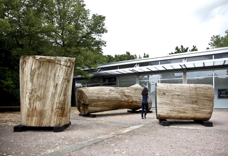 Als einer der wichtigsten britischen Gegenwartsbildhauer wurde David Nash 1999 zum Mitglied der Royal Academy of Arts in London ernannt. Eine große Retrospektive seines Werks wurde 2010/2011 vom Yorkshire Sculpture Park ausgerichtet. Er lebt und arbeitet seit 1967 in Nord-Wales, wo einerseits seine charakteristischen Einzelskulpturen, aber auch Naturinstallationen und Landschaftsprojekte entstehen, die den Witterungseinflüssen ausgesetzt sind oder natürlichem Wachstum unterliegen. In diesen sich über die Jahre verändernden Arbeiten setzt der Künstler einen Prozess in Gang, der von der Natur bestimmt und vollendet wird, so dass der künstlerische Gestaltungwille und die elementaren Kräfte der Natur zusammenwirken. Auch in den Skulpturen David Nashs ist der Dialog mit der Natur stets Ausgangspunkt der Formgebung. Nash arbeitet vorrangig mit Holz und auch seine Metallarbeiten entwickelt er aus der Arbeit mit dem Holz. Dabei verwendet er stets entweder abgestorbene oder ohnehin gefällte Bäume, geht von ihrer jeweiligen Beschaffenheit aus, berücksichtigt ihre Struktur, ihr Alter und ihre Farbe, ihre Formbarkeit, ihre Widerständigkeit oder Verletzlichkeit. Mit der Kettensäge oder mit einfachen Werkzeugen arbeitet er den Hölzern ihnen innewohnende Formen heraus und bezieht die Metamorphose des natürlichen Materials in sein Werk mit ein. Durch serielle Strukturen fächert er einen massiven Holzblock wie eine Ziehharmonika auf oder verwandelt schwere Baumstämme in filigran wirkende, sich in Spiralen drehende, geschuppt oder zusammengerollt wirkende Säulen oder Ei-Formen. Symbolische Kreuz- oder Ei-Formen ziehen sich durch das gesamte Werk von David Nash. Daneben bestimmen universelle geometrische Formen wie Pyramiden, Kugeln oder Kuben sein Schaffen, was auf die Vorstellung zurückgeht, „dass die Geometrie einen Weg zum Verständnis von Natur, Schwerkraft, Raum und Zeit weisen könnte“. Bekannt wurde David Nash vor allem auch für seine beeindruckenden Holzarbeiten mit ganz oder teilweise verkohlter Oberfläche. Auch in diesen Werken wird das Prinzip der Metamorphose auf die Kunst übertragen: Nash führt durch das Verkohlen den Übergang des Materials vom organischen in den mineralischen Zustand herbei. Die angekohlte Form wirkt verdichtet, das Augenmerk wird vom Material auf die Gestalt gelenkt. In der Stadtkirche und vor der Kunsthalle Darmstadt sind im Rahmen von „Blickachsen 8 RheinMain“ verschiedene Arbeiten von David Nash zu sehen, die einen Einblick in diese Bandbreite seines Schaffens bieten.
