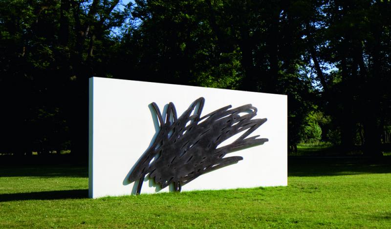 Skulpturen unregelmäßige Spiralformen und Linienknäuel aus Vierkantstahl. Solche „Lignes