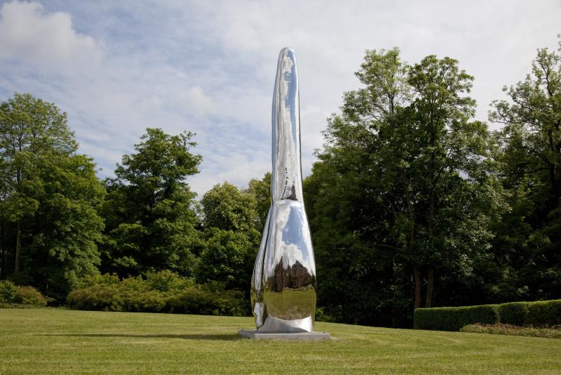 steht die über fünf Meter hohe „Tongue“ in glänzendem Edelstahl wie ein Denkmal neben dem