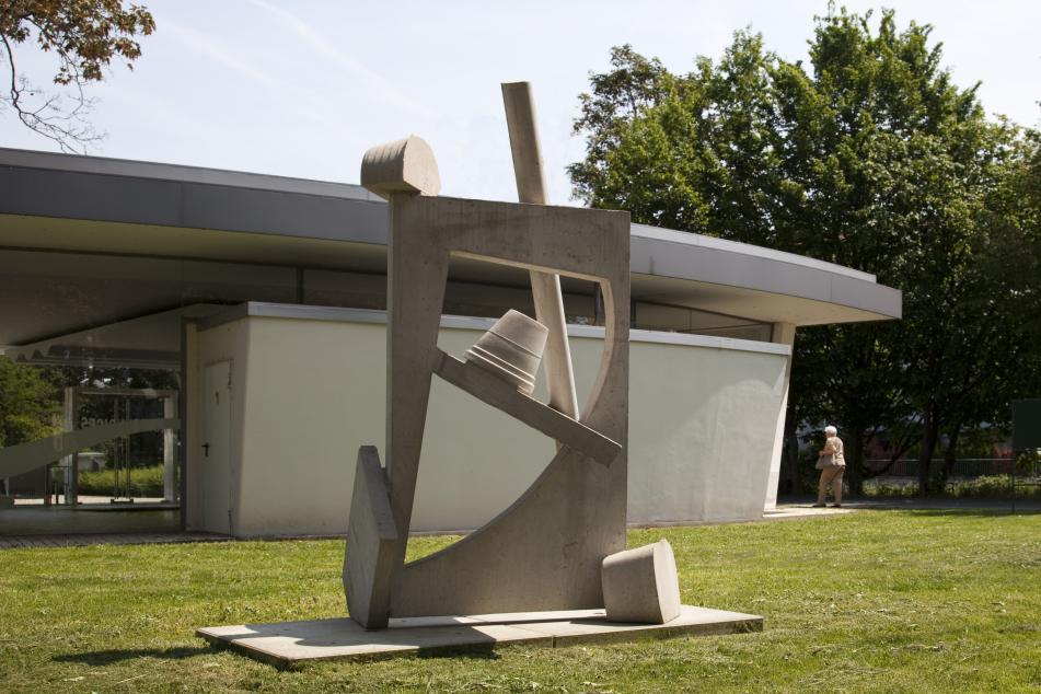 Ruud Kuijer made his name internationally with his ambitious large-scale project “Waterwerken” (Waterworks), installed on the Amsterdam-Rhine canal near Utrecht, as well as with his monumental outdoor works in Melbourne and Panama City. In Blickachsen 12, he is showing altogether ten of his unmistakeable works in Bad Vilbel, Eschborn and Frankfurt. His sculptures are abstract spatial compositions in reinforced concrete: geometrical, linear and flat, sometimes even massive-seeming structural elements are combined into apparently unstable spatial arrangements. Playfully, Kuijer often also incorporates recognizable objects when he constructs his casting moulds from form elements taken from found or fragmented everyday items. As his working material, he uses an exceptionally thin concrete specially developed for him, which in the casting process can flow freely from one part of the mould to the other, and whose surface structure precisely reproduces that of his model. In Bad Vilbel, the rather compact “Kolomskulptuur II” (Column Sculpture), the work “Staffetta I” (Relay Race) with its seemingly precariously balanced elements and the open “Vensterskulptuur V” (Window Sculpture), give an insight into the range of expressive forms in the work of Ruud Kuijer.