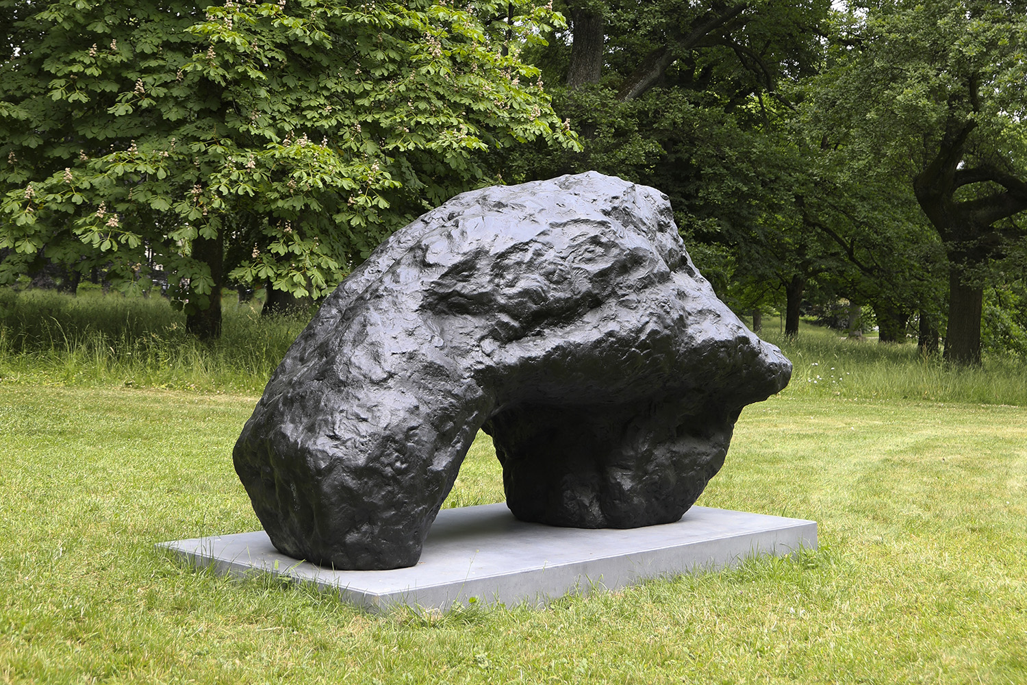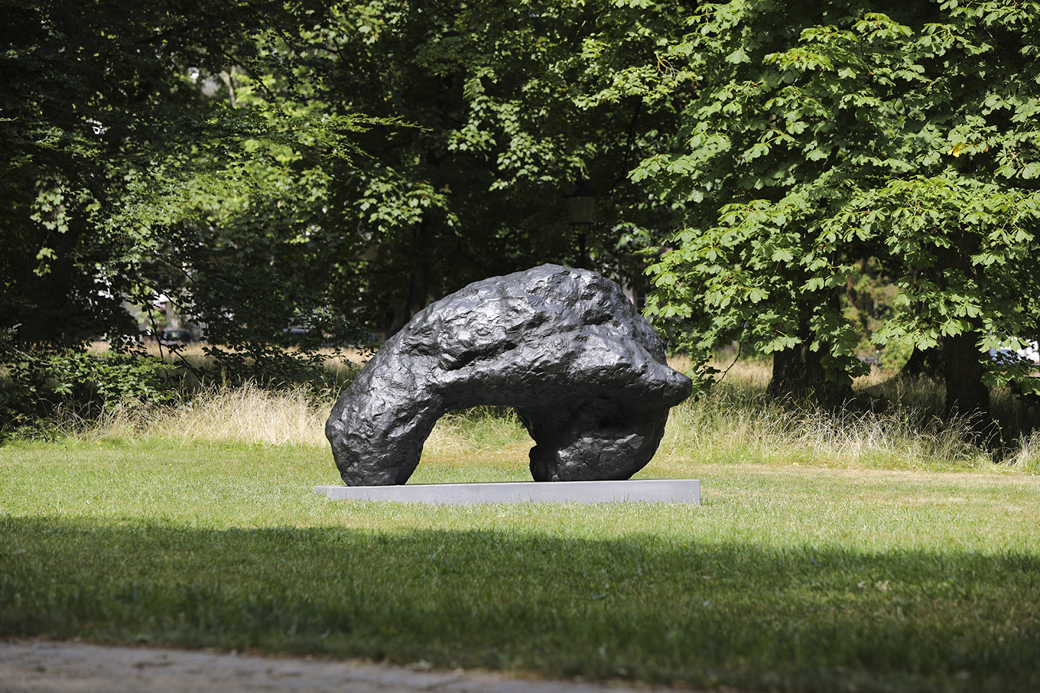 In his work spanning more than half a century, the British-American artist William Tucker explores the essence of sculpture. While his early sculptures, in which he uses industrial materials such as steel and plexiglass, are geometrically abstract, his more recent works, modelled in plaster and subsequently cast in bronze, have an immediate visual corporeality. The latter is also true of the two bronzes selected for Blickachsen 13. “Frenhofer” and “Tauromachy” seem at first sight to be non-representational and yet, with their bulges and rough, chapped surfaces, animate. Their titles alone provide a clue to their meaning: in the case of “Tauromachy” (Bullfight), very directly. “Frenhofer”, on the other hand, refers to a short story by Honoré de Balzac, which tells of an artist’s quest for the perfect illusion of life in art, whose masterpiece is however revealed by two painter friends as merely a confusion of lines and colours.