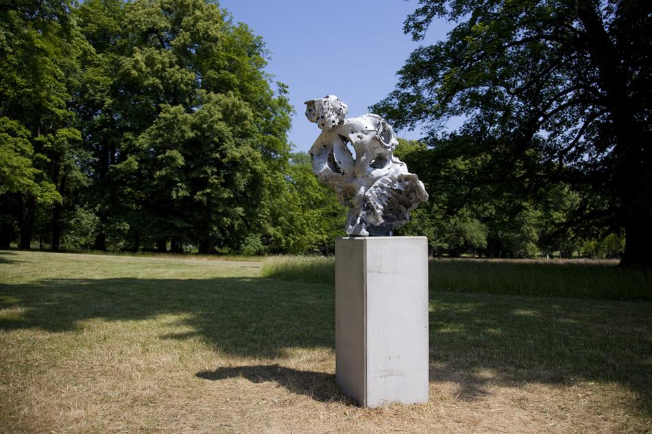 Peter Rogiers’ sculpture “Wild Boys & Girls” shows a torso between figuration and abstraction. Its suggestion of a stooping human body is called into question by the aluminium material, the rings resembling ball-bearing races at the point where the arms would normally begin, and the engineered surface with its gaping fissures. Inside the sculpture, the surface is sharp, dangerous and hostile to life. And yet with the misshapen, apparently superimposed face, Rogiers manages to bring the viewer back to the starting point: we see an anthropomorphic figure. This tension is typical of his work, which often moves between two poles – here, for example, between classical sculpture and Futurism. Rogiers does not illustrate, but investigates what he considers the “essence” of sculpture: form, proportion, contrast, equilibrium and association with the familiar. At the same time he rejects the idea that the meaning of an artwork can be summed up in a simple statement. Although “Wild Boys & Girls” immediately prompts multiple associations with classical torsos in European art history, it eludes clear interpretation through its elaboration, choice of material and – not least – its title.