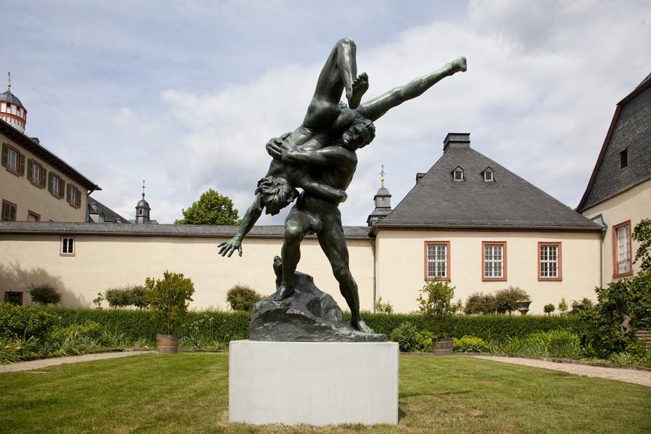 Jef Lambeaux was one of the most celebrated – and notorious – sculptors working in Antwerp in the late 19th century. He and his artist friends loved to attract attention by parading around the city in historical costumes. His sculptures, also, caused a stir; but at the same time, they seriously addressed the question of the representation of the body in the Renaissance and the Baroque periods. Lambeaux created numerous fountain figures, park sculptures and monuments, taking up classical themes in vividly animated nude sculptures – such as the Brabo Fountain, which became the landmark of Antwerp. For a pavilion designed for the 1897 World Exposition, he created the marble relief “Human Passions”, which was denounced by the Catholic church for being a “marble brothel”. Fighting and love scenes are a recurrent theme in his work. His sculpture “The Wrestlers” takes up a theme developed since the time of the Renaissance, of two naked bodies straining themselves in extreme combat. Lambeaux here intensifies this tradition through the highly expressive gestures and facial expression of the wrestlers, binding the observer in to the precarious balance they hold.
