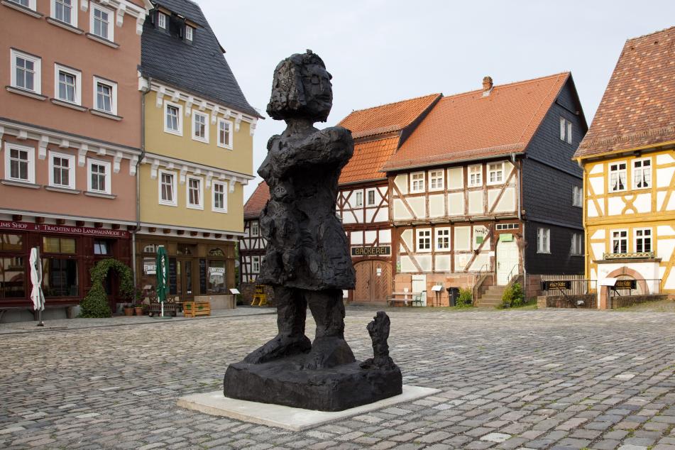 In the Hessenpark Open-Air Museum three large-format bronzes created for “Blickachsen 11” by Jean Y. Klein are on display. Like his “Shepherdess”, exhibited in Bad Homburg, the title of “Pastoral” refers to a long tradition of representations of idyllic pastoral motifs. The subject of the owl, also, connects the sculpture with Greek mythology: the owl represents the wise Goddess Athena, who among other things was considered the divine protectress of the artisan. In the Hessenpark, where historical craftsmanship plays an important role, this bronze therefore takes on a meaning of its own. In his designs for the nymph “Calypso” and the winged horse “Pegasus”, Klein, who today lives and works in Berlin and on the Greek Peloponnese, again invokes the world of Greek myths, and concerns himself with human and animal forms. At the same time, these works are not purely realistic or naturalistic. Rather, with his abstracted figures and their roughly hewn surfaces, Klein develops a characteristic formal language oscillating between suggestion and clear definition, transferring, in the process, these ancient motifs into the present.