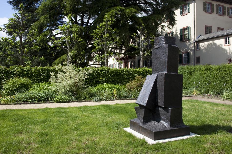 The Austrian sculptor Fritz Wotruba ranks as one of the most important European artists of the twentieth century. Originally trained as an engraver, he went on to study sculpture at the Vienna School of Arts and Crafts. During the period of National Socialism, he emigrated to Switzerland, where he was able to continue his artistic work. Later, he for many years led a masterclass in sculpture at the Academy of Fine Arts in Vienna. His work has shaped several generations of artists, including Joannis Avramidis or Josef Pillhofer, all of whose works are also to be seen in “Blickachsen 11”. Wotruba’s work is always concerned with the human body, which he does not represent naturalistically, but rather in terms of its fundamental structures, which he conveys in abstracted, geometric forms. The two bronzes “Große stehende Figur” and ”Große Skulptur” are typical of Wotruba’s highly distinctive art, which consists of additively joined cuboid elements, often piled on top of each other. In his extensive oeuvre, Wotruba made use of all the materials of traditional sculpture – wood, stone, iron or bronze – to create his seemingly architectonic works.