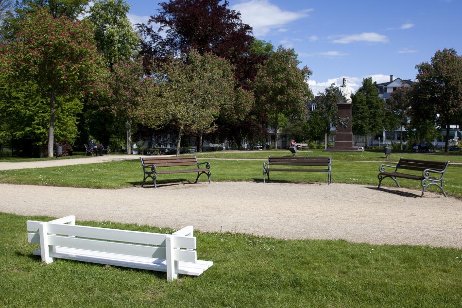 Jeppe Hein, a graduate of the Royal Danish Art Academy and the Städelschule in Frankfurt, lives in Berlin and Copenhagen. Hein‘s interactive art objects are internationally exhibited. In “Blickachsen 11” visitors to Bad Homburg have three opportunities to use one of Jeppe Hein’s humorously designed “Modified Social Benches”. In this series of works, Hein reinterprets the classical park bench, challenging citizens and guests of the city to confront his variations on the theme. Placed in many locations since 2005, his benches are not just for sitting on; rather, these strange pieces of urban furniture permit, or (depending on the version) demand, that their users face each other, find their feet on them, or playfully make them their own. Hein repeatedly designs sculptures for the public space, but not simply to shape or decorate it. Rather, his works can be seen as a call to a more active use of this space, an exhortation to linger, or contemplate it from a different perspective. In this way, Hein invariably creates places for an encounter, a conversation, play – places open equally to everyone and to be shared between them.