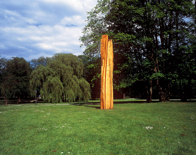 The idea of taking out a part and placing it back in an upright position, gave me the security to get closer to the tree and its distinctive sense of its own presence, that means, in having lead it away from its trunk growth that so characterized it, that it became more foreign to me. Sometimes an artwork is able to stand opposite you as something foreign and to ask itself, what happened?