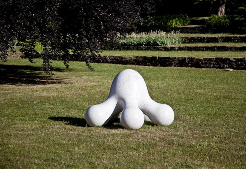 The works of the Japanese artist Masayuki Koorida captivate and enthrall through their simple yet singular designs. They remind one of molecules, or amoeba – of the smallest particles or organisms, infinitely enlarged. Chiselled out of granite or black or white marble, and then polished to a high gloss, they give the impression, with their perfect curves, that they could easily dissolve or shatter to the touch. They seem fragile yet stable in themselves, artificial and yet alive. In “Blickachsen 7”, four of Koorida’s works lay distributed over a wide meadow in the Bad Homburg Kurpark. This year, as part of “Blickachsen 8 RheinMain”, six large-scale works by Koorida are on display in the Westend campus of the Goethe-Universität in Frankfurt. In their location on a meadow near the water basin between the Poelzig buildings and the Casino annexe, their colours and formal language create a clear contrast with the surrounding architecture: the sharply rectangular lines of the buildings are confronted by the organically curved and rounded forms of the sculptures. Conversely the sculptures, glowing white or black in the sunlight, stand out against the earthy colours of the natural stone cladding of the campus buildings. In this way they function as a link between the built and the natural forms of their environment. In contrast to the permanence and strength of their materials, these stone sculptures, with their titles such as “Embryo”, “Growth” or “Seed”, identify themselves as organisms in a process of being created. Their highly aesthetic, haptic quality invites exhibition visitors and students alike to approach them and spend time with them. Masayuki Koorida, whose work is internationally known, studied in Japan and later lived in The Netherlands and Taiwan. Since 2006 he has been the Artistic Director of the Shanghai Sculpture Park. Koorida describes sculptural creation as a process, in the course of which thoughts and inspiration in search of a universal language form themselves into a concept, a concrete image. By means of a concentrated creative transformation this “original content of a sculpture” takes on, in Koorida’s works, a complex visible form, opening up an infinite space for the observer’s imagination to play.