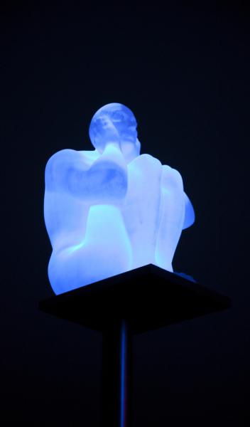 In The Squaire building at Frankfurt airport, an installation of sixteen “Silhouettes” hangs like a giant mobile over the heads of visitors in one of the four atria of the building. The life-sized silhouettes of people, caught in a variety of everyday situations, are suspended on metal bands of text which appear to snake up from their heads, functioning almost like banners in medieval painting, or speech bubbles in comics. The letters, cut out from sheets of stainless steel, combine to form literary quotations, particularly from poetry: aphorisms demanding an imaginative participation on the part of the observer. One of these is William Blake’s “One thought fills immensity”, which is a leitmotif spanning the whole of Plensa’s work, and at the same time the concept illustrated by the “Silhouettes”: for the artist, silence and the word, thoughts, ideas and dreams all have their own materiality, and constitute in their vibrant energy the very material of sculpture.